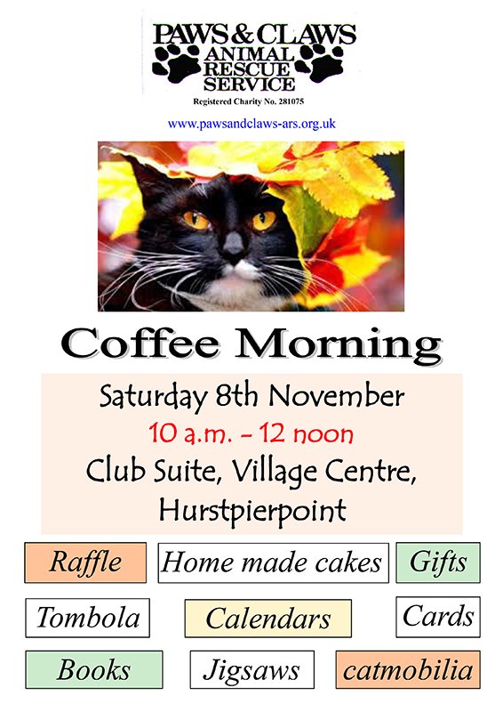 Come along and meet the Paws & Claws cats! Plus many stalls and refreshments will be available throughout the afternoon.